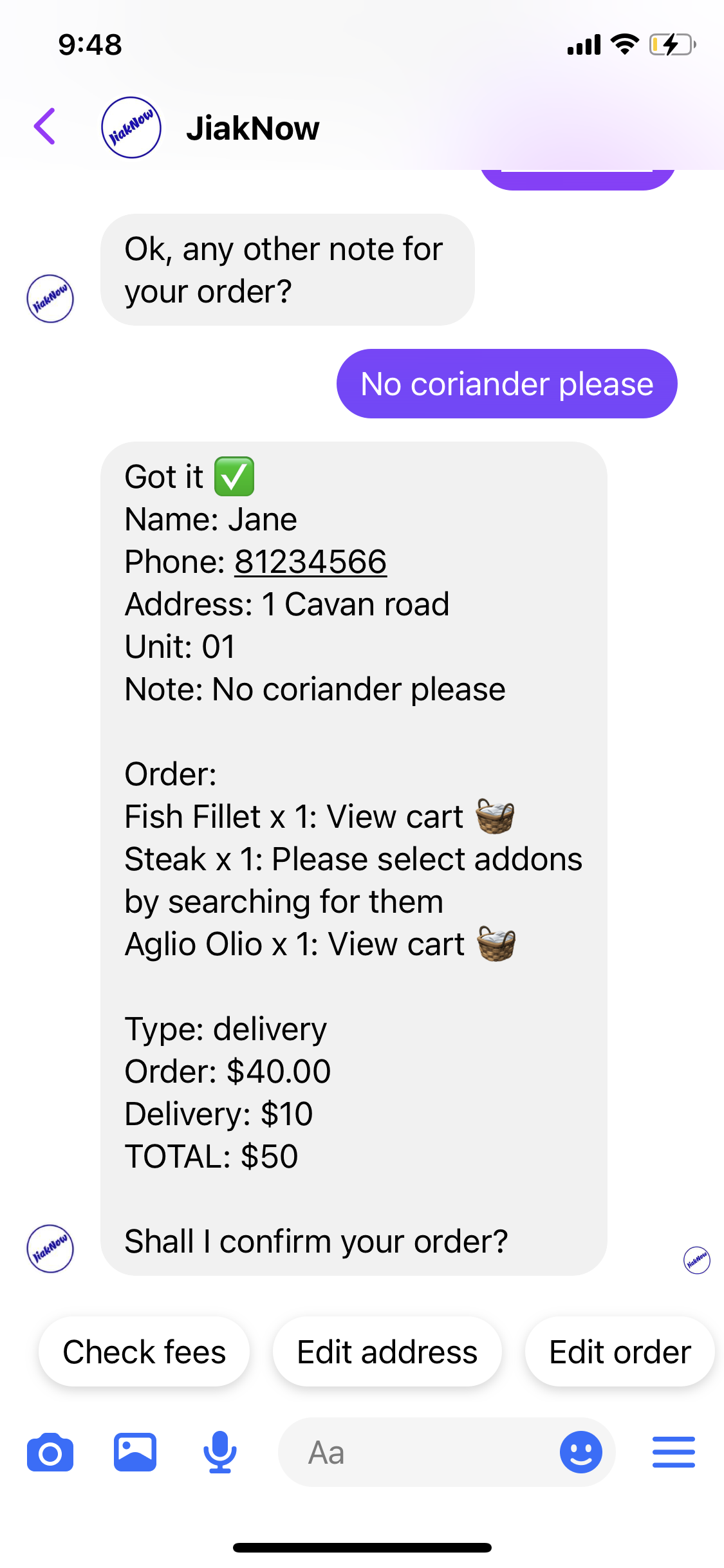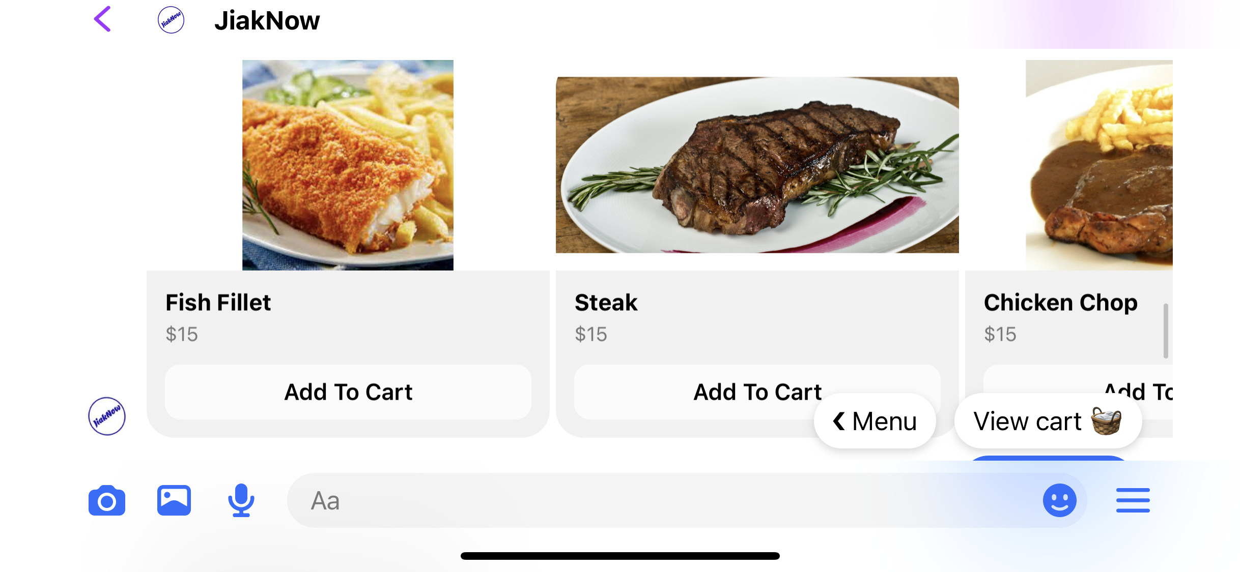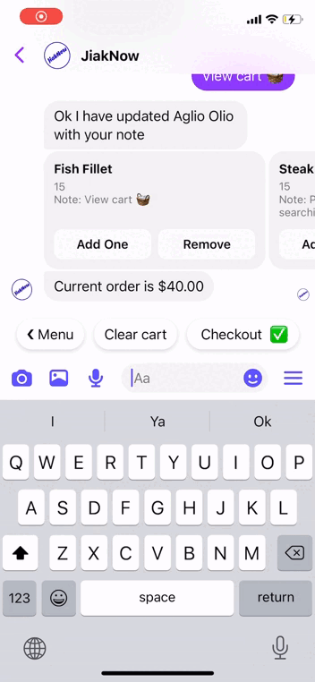 Order from a chatbot widget on your website similar to the one you see here on Jiaknow.com